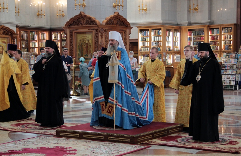 Всенощное бдение с участием трех архиереев прошло в кафедральном соборе Хабаровска. 17 июля 2021 г.